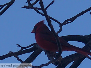 I've been trying to get some good photos of this cardinal all summer. This morning while I was outside with my dog, Jonah, the cardinal called my name. Well actually, it was more like he was saying, "Aren't you and that dog ever going inside so I can get some food?" We were sitting on the front steps too close to the bird feeder to satisfy the cardinal. Although the sparrows are getting used to Jonah and me being there, the cardinal is a bit skittish about us. But, he posed for me and these are the photos I got this morning.